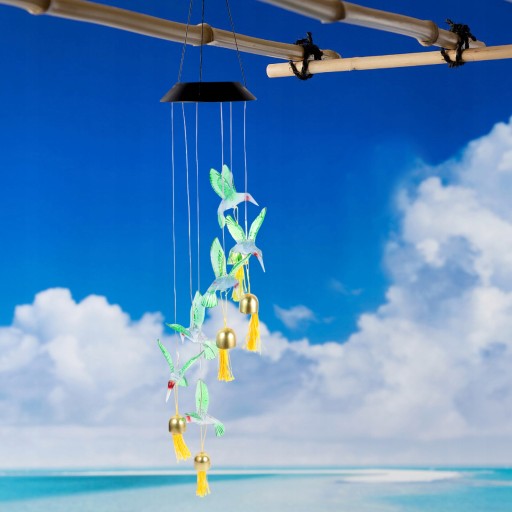 This is a solar power wind chime light, colorful lights, and beautiful shape. Solar power, ecofriendly, very convenient. It can bright at night when solar panel full sun exposure in the daytime. It will light up at night.