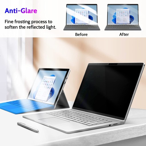 4. Blokowanie promieni niebieskich: Ten prywatny ekran do laptopa Surface został zaprojektowany z warstwami filtrów, które mogą blokować 95% promieni niebieskich i 92% promieni UV, zmniejszać światło odbite o 95%, a także jest odporny na kurz i zarysowania.