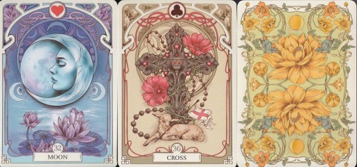 Urok i ponadczasowe piękno tradycji Lenormand spotykają się z motywami kwiatowymi stylu Art Nouveau, tworząc niezwykle elegancką i wyrafinowaną Wyrocznię. Ta artystyczna wersja słynnej francuskiej talii prezentuje świeże i kreatywne podejście do słynnego formatu, wykorzystując zapierające dech w piersiach obrazy i organiczne kształty ruchu Art Nouveau, aby ująć w ramy wszystkie elementy klasycznych kart Lenormand.