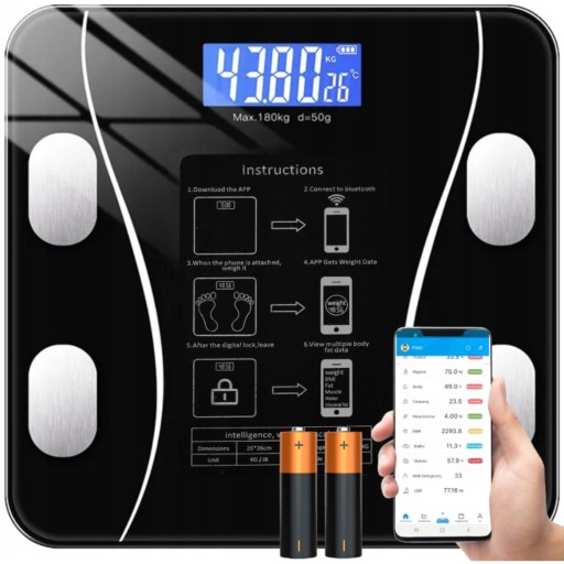 ANALITYCZNA INTELIGENTNA WAGA ŁAZIENKOWA BLUETOOTH DO 180kg