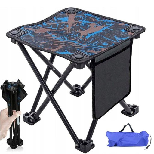 - Jest to składany stołek kempingowy, który rozkłada się bez konieczności montażu; można go złożyć w 3 sekundy.