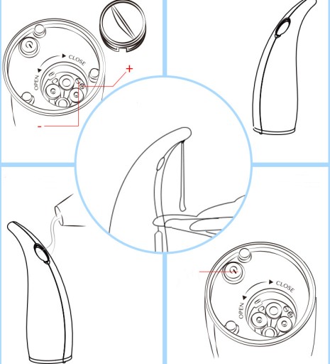 Dyspenser posiada diodę LED sygnalizującą działanie systemu dozownika. W momencie podawania mydła dioda świeci się na niebiesko. Najlepiej działa kiedy dłoń podstawiona jest w odległości 5 cm od czujnika.