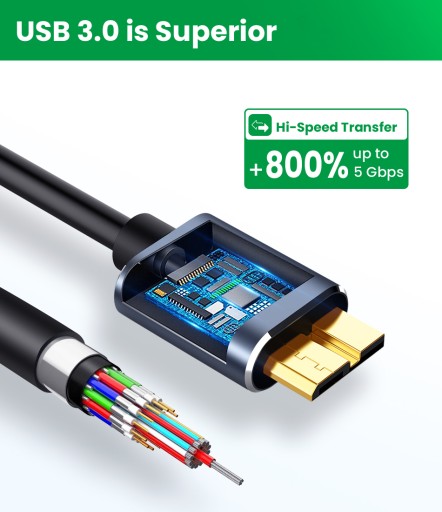 - Pozłacane 24K złącze Micro- B USB 3.0 pasujące nowoczesnych dysków zewnętrznych