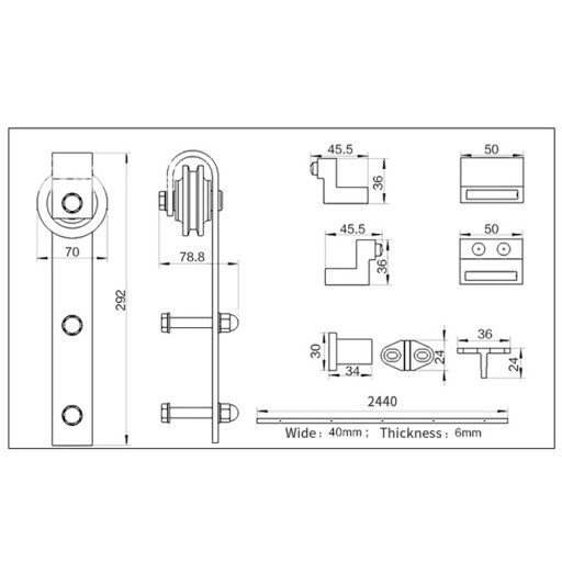 * Ten praktyczny system drzwi przesuwnych jest trwały wykonany z wysokiej jakości stali i łatwy w montażu. Jest idealny do przesuwnych drzwi drewnianych w kuchni, salonie, sypialni lub łazience, a także do bramy garażowej.