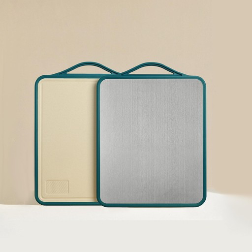 [Dwustronna deska do krojenia] Jedna strona wykonana jest ze stali nierdzewnej 304 do mięsa i ryb, druga strona to słoma pszenna do owoców i warzyw, dzięki czemu jest solidna i trwała w użyciu w kuchni