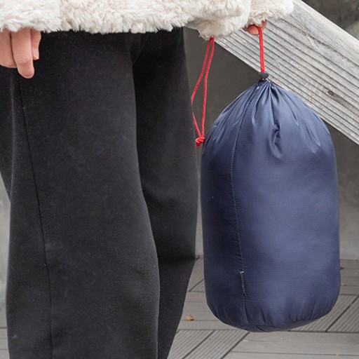 CECHY: Worek kompresyjny do śpiwora z zamkiem sprężynowym zapewnia prywatność i zabezpiecza ubranie przed rozlaniem, wystarczy najpierw nacisnąć, a następnie zacisnąć taśmę, aby go zamocować.