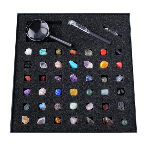✅w zestawie lupa do oglądania eksponatów, długopis do sporządzania notatek, ulotka z nazwami kamieni.
