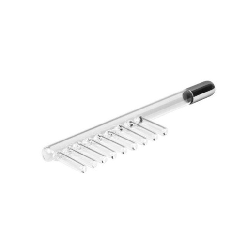 Urządzenie D’Arsonval oferowane na naszej aukcji posiada w zestawie 4 szklanych pelot, do zastosowania na różnych powierzchniach ciała: