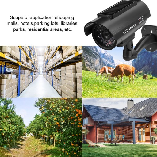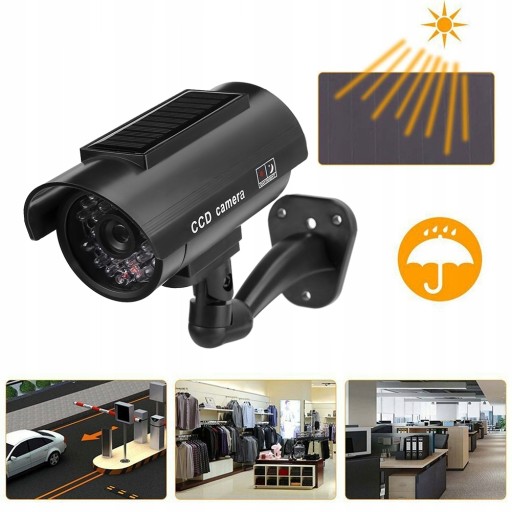 Zasilana energią słoneczną wodoodporna imitacja atrapy fałszywej kamery bezpieczeństwa z migającym światłem LED