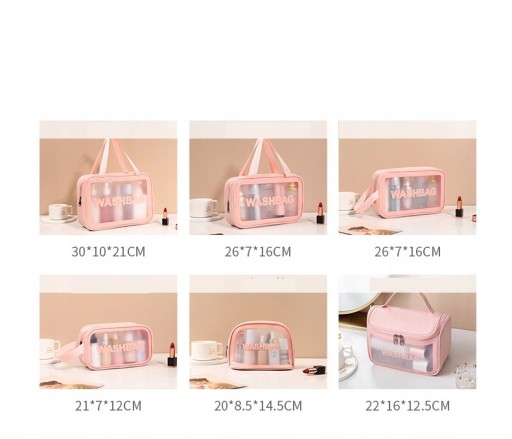 6w1 kosmetyczka Zestaw przeźroczysta pojemna PCV