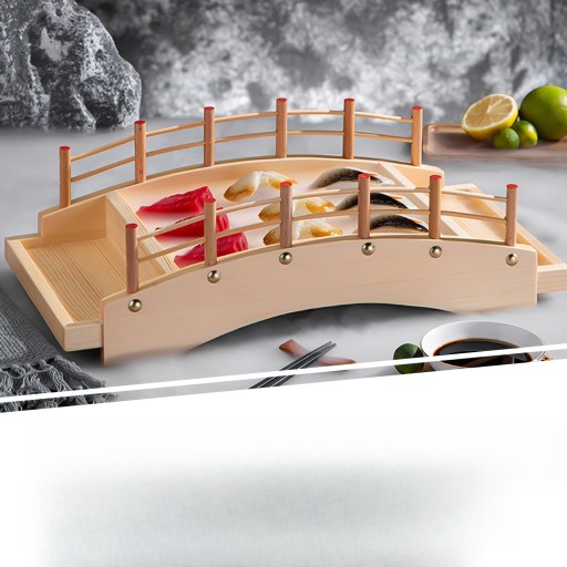 ✅Wykonane z wytrzymałych, trwałych materiałów najwyższej jakości. drewniany most łukowy z kreatywnością Taca na łódeczki z sushi o idealnej wielkości do każdej restauracji lub na okazję.