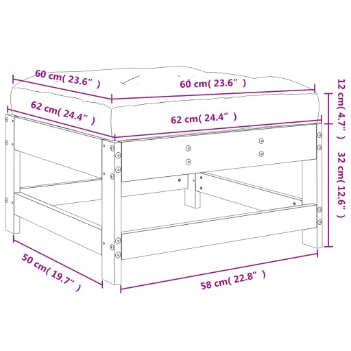 vidaXL Садовая табуретка для ног с подушкой, массив сосны