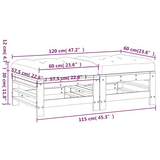 vidaXL Садовые подставки для ног с подушками, 2 шт., сосна медовая