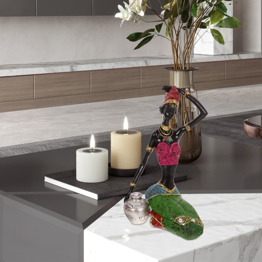 ✅Ta wykwintna figurka czarnej kobiety z żywicy oddaje esencję egzotycznego afrykańskiego charakteru, dzięki czemu jest wyjątkowym i kreatywnym dodatkiem do wystroju Twojego domu. Dzięki swoim szczegółom i oszałamiającemu kolorowi ta dekoracyjna ozdoba idealnie nadaje się do wystawienia w salonie lub innym miejscu w nowym domu.