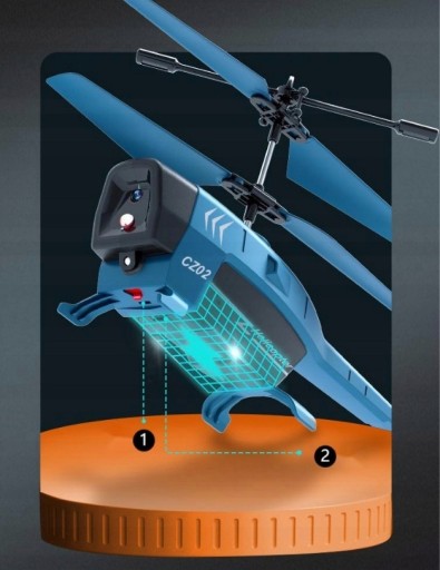 - Akcesoria: helikopter*1, zapasowe skrzydło*1, kabel USB*1, pilot*1, angielska instrukcja*1