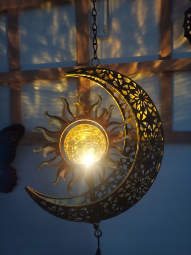 Jedyne w swoim rodzaju wzornictwo- ten dzwonek wietrzny w stylu retro składa się z pustych kształtów księżyca i opalania z metalu, 5 brązowych rurek aluminiowych, kuli solarnej. Melodia jest przyjemna, relaksująca i delikatna, co zapewni wesoły nastrój.