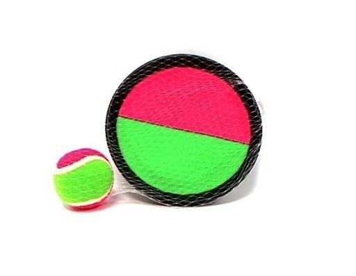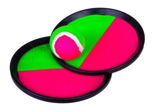 Komplet zawiera 2 okrągłe paletki oraz piłkę, które zapewnią interesującą, radosną i dynamiczną zabawę. Regulacja rączki pozwala na dopasowanie paletki do wielkości dłoni oraz zapewnia wygodny i stabilny uchwyt. Piłka na rzepy to wielokrotna zabawa, zarówno dla starszych, jak i młodszych, bez względu na płeć; idealnie nadaje się do grania w ogrodzie, parku czy też na plaży podczas wakacji; piłkę można z powodzeniem wykorzystać również do zabawy np. z psem lub innym pupilem domowym. Miękki materiał z rzepem. Średnica rakietki: 18,5 cm. Średnica piłeczki: 6,3 cm. Rozrywka dla dzieci i dorosłych. Dzięki pokryciu paletek rzepem trudniej jest zgubić piłeczkę. Tarcze posiadają regulowany rzep na odwrocie, umożliwia to pewniejsze jej chwycenie.