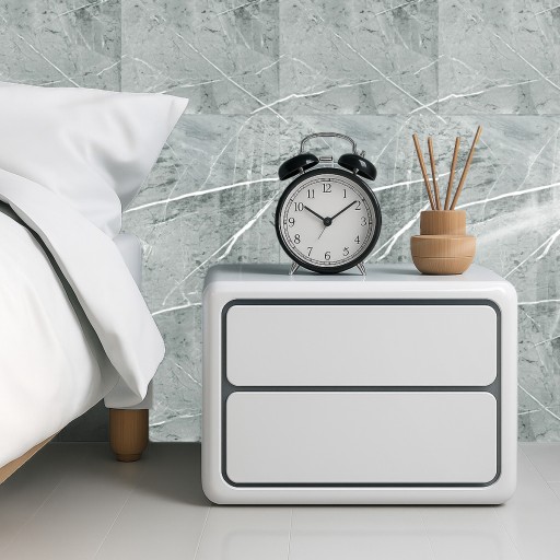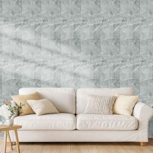 Tapeta samoprzylepna z wzorem marmuru nada eleganckiego charakteru temu pomieszczeniu. Można ją zastosować na jednej ze ścian, tworząc wyrazisty akcent lub też pokryć nią wszystkie ściany.