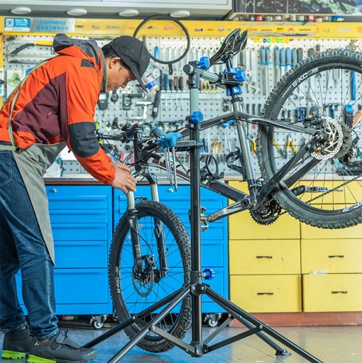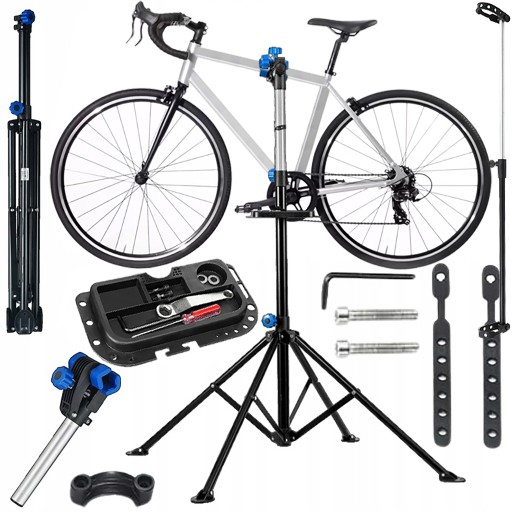 - Stojak serwisowy na rower oferuje możliwość regulacji wysokości w zakresie od 108 cm do 190 cm, co pozwala na precyzyjne dostosowanie go do potrzeb użytkownika.