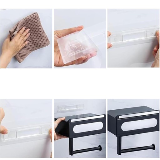 🌟 WYSUWANE PUDEŁKO NA CHUSTECZKI UCHWYT NA PAPIER TOALETOWY PÓŁKA DO PRZECHOWYWANIA BEZ DZIURKOWANIA 1 NAKLEJKA BEZ DZIURKOWANIA