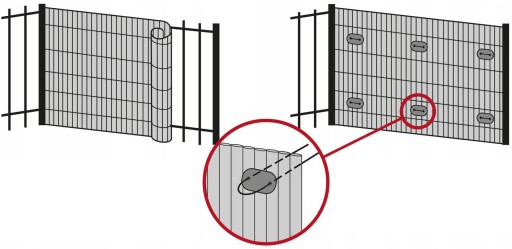 Wykonana została z wysokiej jakości tworzywa PVC. Materiał ten jest niesamowicie trwały. Idealnie nadaje się na zewnątrz, gdyż jest odporny na warunki atmosferyczne. Dodatkowo jest lekki, więc mata może zostać przymocowana do płotu, balustrady jak i siatki.