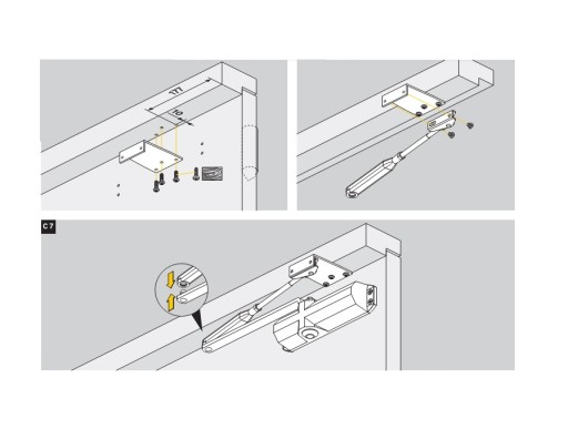 samozamykacz na skrzydle drzwiowym, wspornik na ramie(futrynie) drzwiowej