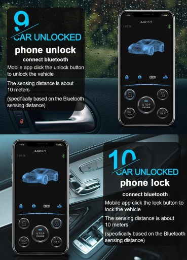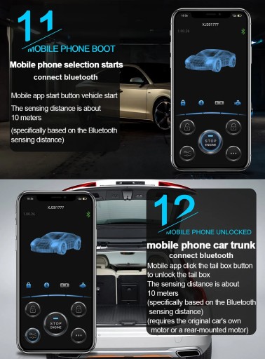 Mobile app start button vehicle start ,The sensing distance is about 10 meters.
