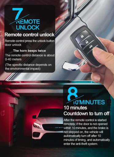 After the remote control is started remotely, if the door is not opened within 10 minutes, and the brake is I not stepped on, the vehicle will automatically turn off after 10 minutes of timing, and automatically enter the anti theft system.