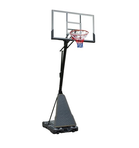 Profesjonalny kosz z dużą tablicą o wymiarach 122 x 82 cm, zabezpieczona osłoną z polietylenu oraz stalową ramą. Zastosowanie tych materiałów zapewnia stabilność i wysoką trwałość konstrukcji. Dzięki regulacji wysokości w zakresie od 240 do 305 cm ten kosz będzie odpowiedni dla całej rodziny, która chce aktywnie spędzić czas, ćwicząc celne rzuty.