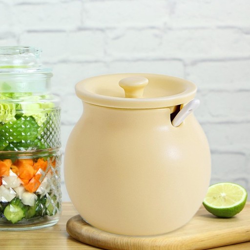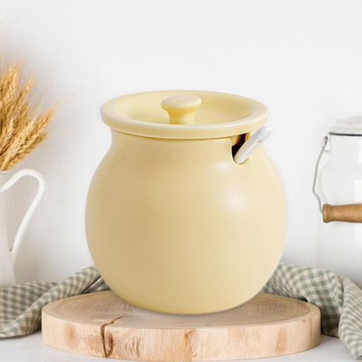 Pojemnik kuchenny z łyżką w pokrywce. Przechowywanie żywności. Pojemnik na przyprawy. Pojemnik ceramiczny S. Żółty