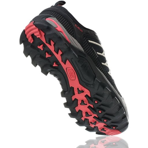 Podeszwa - oparta o technologię CMP FULL On GRIP zapewni bezpieczeństwo i pewny krok użytkownika w niemal każdych warunkach pogodowych. Stosując wzór bieżnika w jodełkę, sprawdzi się zarówno na suchych, jak i mokrych nawierzchniach, przy zachowaniu niskiego poziomu ścieralności.