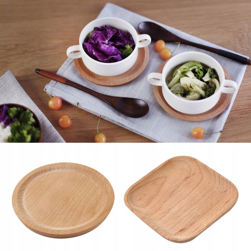 2-częściowy zestaw drewnianych półmisków-1 x 5-calowa kwadratowa drewniana taca do serwowania, 5,51-calowa okrągła drewniana taca. Używane również jako tace do serwowania posiłków.