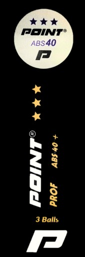 PROF to najlepsze profesjonalne piłeczki marki POINT. Jest to nowa, druga generacja plastikowych piłeczek. Materiał ABS zapewnia maksymalną trwałość, idealny okrągły kształt oraz doskonałe odbicie. Opakowanie zawiera 3 białych piłeczek.