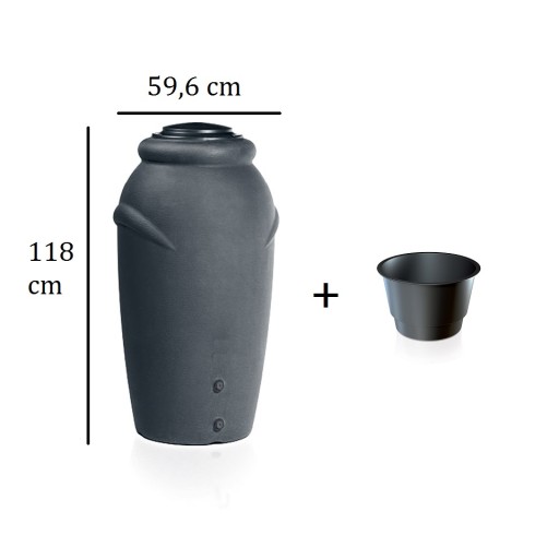 Dane techniczne:Kolor: AntracytowyPojemność: 210LWysokość [mm]: 1130Szerokość [mm]: 596Najmniejszy zbiornik na wodę deszczową z kolekcji jest inspirowana antyczną sztuką użytkową, dzięki czemu produkt ten cechuje nie tylko wysoka funkcjonalność, lecz także niezwykle estetyczny wygląd.Zbiornik wyposażony jest w pokrywę i wkład**Zdjęcie poglądowe