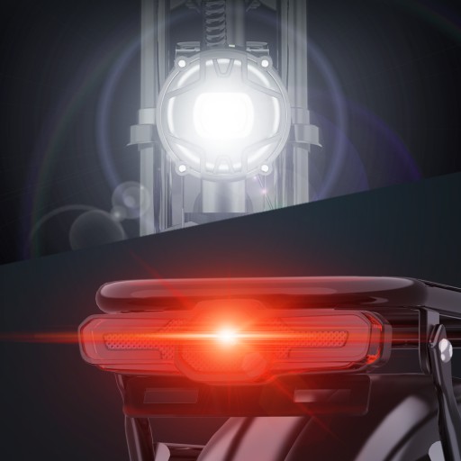 Reflektor LED zapewnia oświetlenie podczas jazdy nocą, a klakson ostrzega innych o obecności. Tylne światło sprawia, że jesteś widoczny z tyłu, a odblaski i lusterka zapewniają dostarczanie mocy i bezpieczeństwo na drodze.