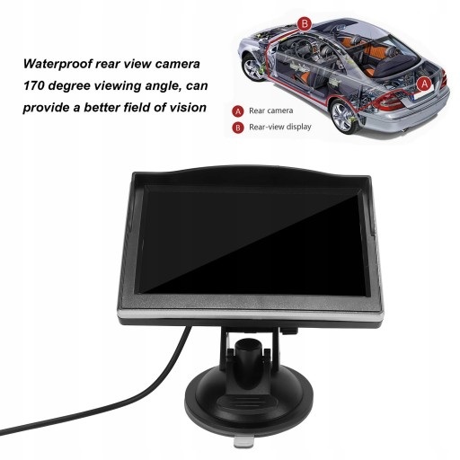5. Ze wspornikiem przyssawki: uchwyt przyssawki ma samoprzylepną naklejkę na spodzie, aby mocno i stabilnie przymocować monitor samochodowy do samochodu, pomagając bezpiecznie parkować lub cofać.