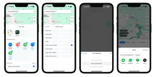 - Udostępnianie lokalizacji: Możliwość przesłania linku do śledzenia na żywo w wybranej aplikacji (np. WhatsApp, Messenger).