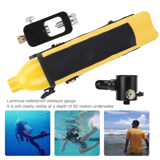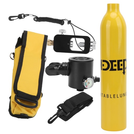 DIDEEP 0,5 l podwodny aparat oddechowy do nurkowania ze zbiornikiem tlenu do nurkowania Zestaw do nurkowania z adapterem (żółta butla, żółta torba do przechowywania)