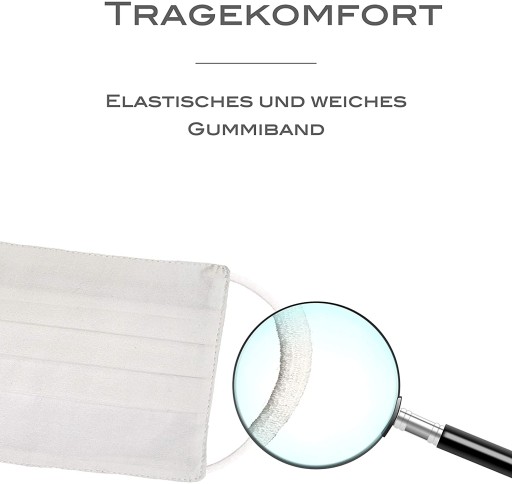 - Przyjazne dla środowiska: maski zostały wyprodukowane zgodnie ze standardem Öko-Tex Standard 100 i składają się w 100% z bawełny BCI (Better Cotton Initiative). Wysokiej jakości bawełna i elastyczna gumka zapewniają ponadto przyjemne uczucie podczas noszenia