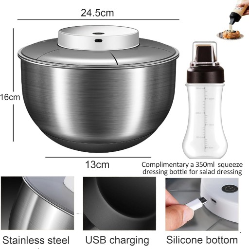 Elektryczne suszenie, inteligentne i wygodne uruchamianie jednym przyciskiem, automatyczne wyłączanie w 20 sekund, szybkie opróżnianie sałatki, brak lepkich rąk podczas całego procesu, nie boi się już mycia warzyw zimą. .