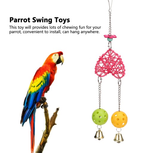 1. Wykonane z plecionej słomy i tworzywa sztucznego, bezpieczne i odporne na ugryzienia, chroniące środowisko i nietoksyczne. 2. Zabawka dla ptaków w jasnym kolorze, przyciągnij ptaki do zabawy na niej przez długi czas. 3. Wyposażony w hak, łatwy w montażu, powieś go w klatce lub gdziekolwiek chcesz zaoszczędzić miejsce. 4. Jako dekoracja klatki dla ptaków może być również używana jako zabawka dla ptaków. 5. Nadaje się dla wszystkich rodzajów małych i średnich ptaków oraz papug.