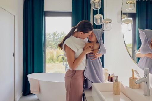 Zapewnia dziecku komfort termiczny nawet po gorącej kąpieli. Pozwala jego skórze swobodnie oddychać i zapewnia przepływ powietrza.