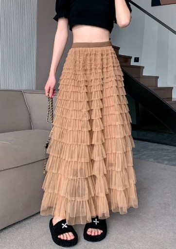Spódnica z falbanami posiada wszytą elastyczną gumę w pasie. Podszyta jest dodatkowo podszewką.