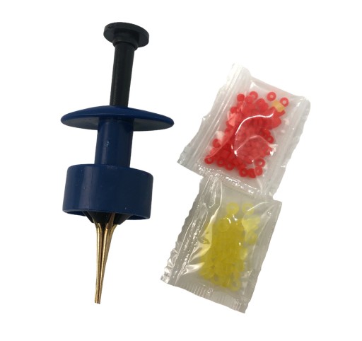 Rozwieracz z zestawem silikonowych gumek do zakładania pelletu przy zestawach pellet waggler, feeder bomb i method feeder. W komplecie znajdziemy zestaw gumek micro i mini. Sprawdzi się przy łowieniu przynętami o średnicy od 4mm do 11mm.