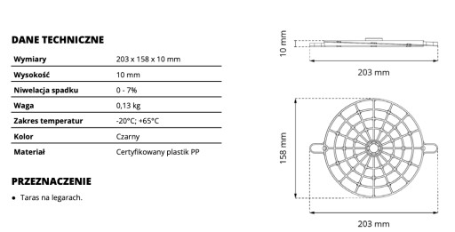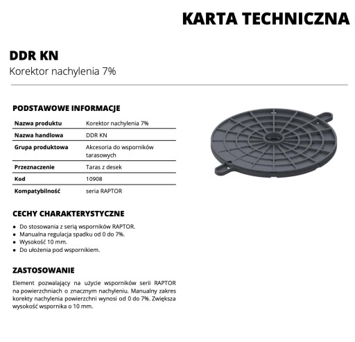 Element pozwalający na użycie wsporników serii RAPTOR na powierzchniach o znacznym nachyleniu. Manualny zakres korekty nachylenia powierzchni wynosi od 0 do 7%. Zwiększa wysokość wspornika o 10 mm.