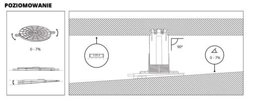 Korektor nachylenia to element pozwalający na użycie wsporników serii RAPTOR na powierzchniach o znacznym nachyleniu. Zakres korekty nachylenia powierzchni wynosi od 0% do 7% (czyli do 7 cm różnicy poziomów na jednym metrze bieżącym).