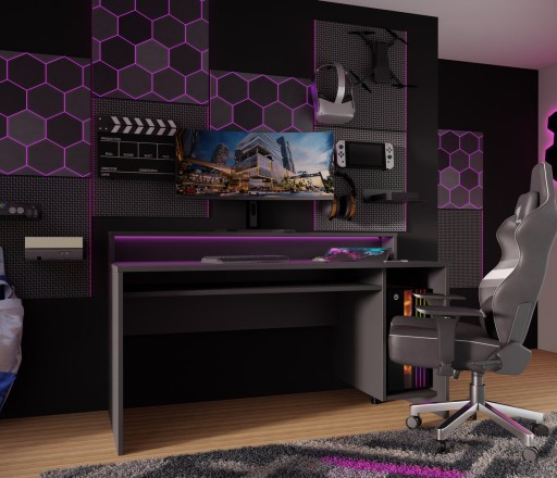 Do biurka dołączone jest oświetlenie LED - RGB + pilot. Oświetlenie świeci w sześciu kolorach a także białym.