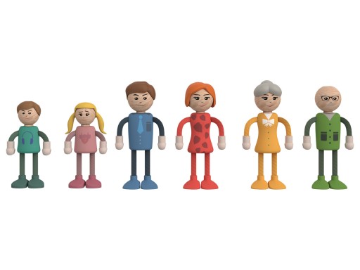 Wykonane z prawdziwego drewna i wytrzymałego tworzywa sztucznego. Beztroska zabawa dla dzieci z lalkami dopasowanymi do dziecięcych rączek. Pobudza wyobraźnię i umiejętność zabawy z wyznaczonymi zadaniami.