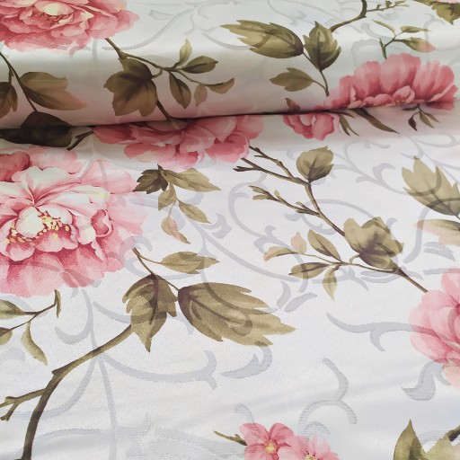- kolor: różowe kwiaty na jasnym (kremowym) tle