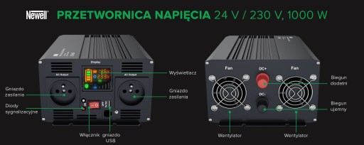 - przetwornica napięcia Newell z czystą sinusoidą - 24 V / 230 V, 1000 W